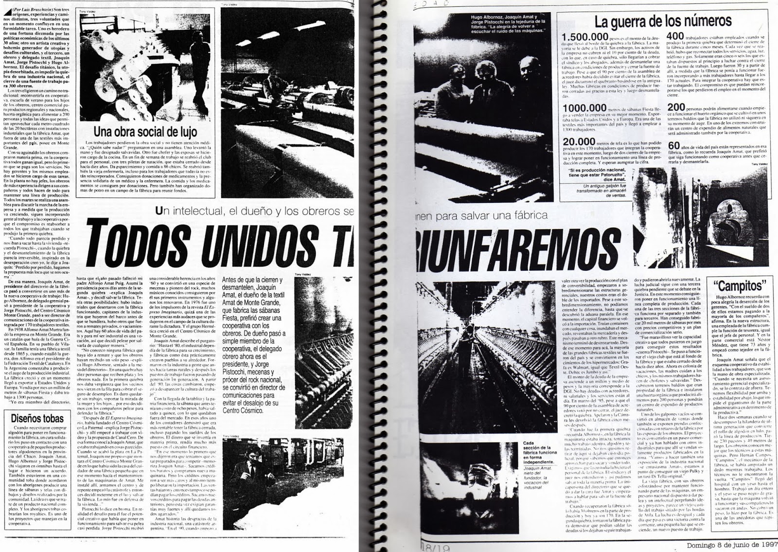 Tambien se salvo su Historia. Hoy sigue viva recordada por los vecinos, por la gente grande, muchos jubilados que trabajaron en Amat, y aun cuentan anécdotas, pequeñas y grandes historias, de los momentos felices que compartieron. Las escucharon sus nietos, sus herederos, que son los que van a seguir recordandolas, contandolas, y porque no, empezando a soñar un nuevo proyecto.